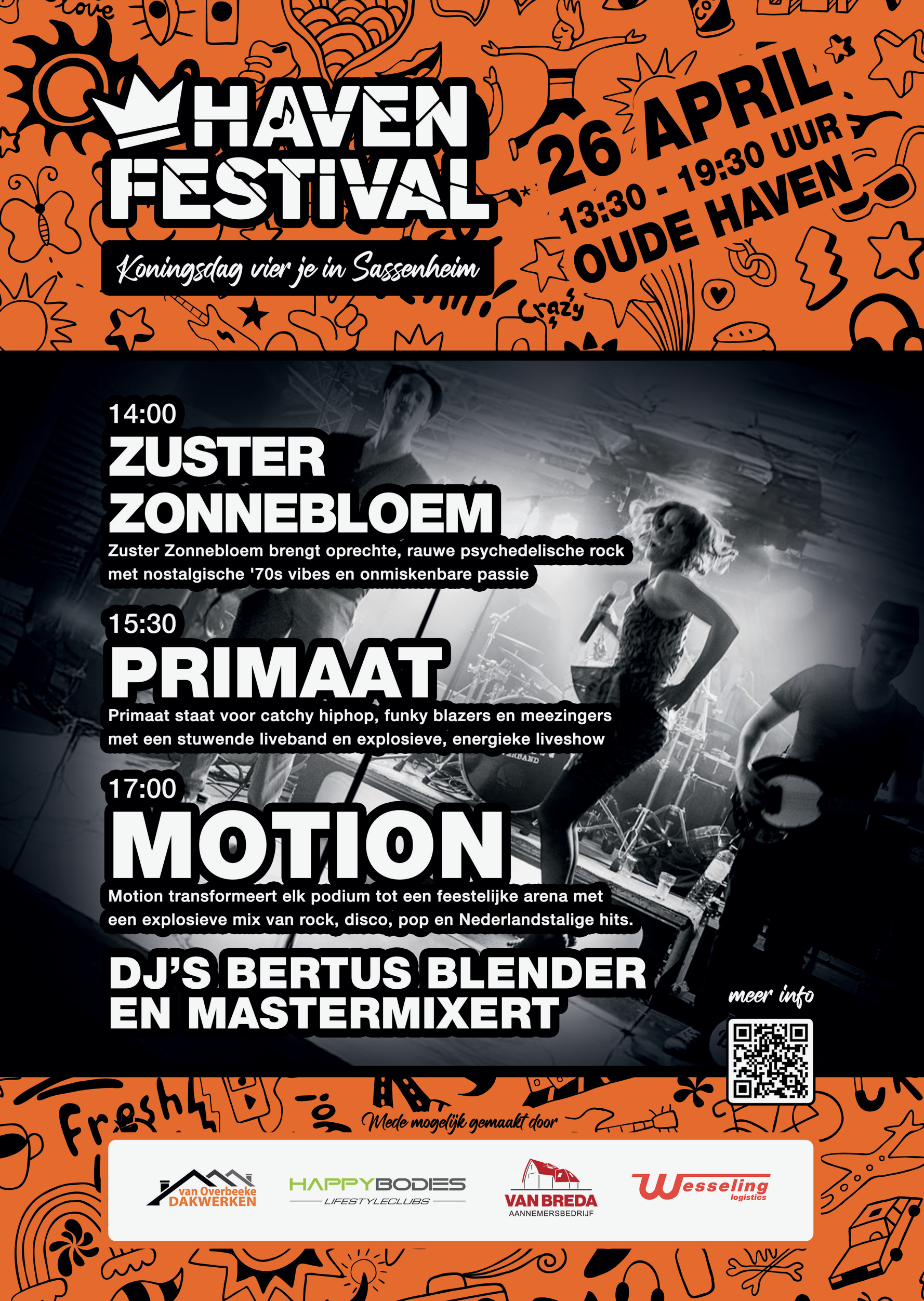 Het gratis te bezoeken Havenfestival zorgt voor de muzikale invulling van jouw Koningsdag! Kijk voor alle info op havenfestival-sassenheim.nl, of volg ons op Instagram of Facebook voor de laatste updates.
